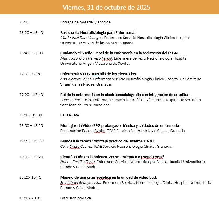 Este encuentro tiene como objetivo fortalecer la colaboración, el intercambio de experiencias y el desarrollo profesional de la enfermería en el marco de la Neurofisiología.